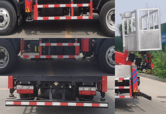專(zhuān)用功能說(shuō)明 | 該車(chē)后伸:320mm,ABS型號(hào)/廠家:ABS/ASR-12V-4S/4M/襄陽(yáng)東風(fēng)隆誠(chéng)機(jī)械有限責(zé)任公司;僅選用2950mm軸距底盤(pán);所用材料材質(zhì)、連接方式以及后部防護(hù)裝置的主要尺寸參數(shù)(斷面尺寸和離地高度):側(cè)、后防護(hù)裝置材料: Q235,側(cè)、后防護(hù)連接方式:焊接連接,后防護(hù)斷面尺寸(寬×高):50×100(mm),下邊緣離地高度:340mm;專(zhuān)用功能及裝置:該車(chē)由液壓機(jī)構(gòu),懸臂,轉(zhuǎn)臺(tái),工作平臺(tái),支腿等構(gòu)成,通過(guò)懸架伸縮,轉(zhuǎn)臺(tái)回轉(zhuǎn),將工作平臺(tái)舉升**作業(yè)位置。 |