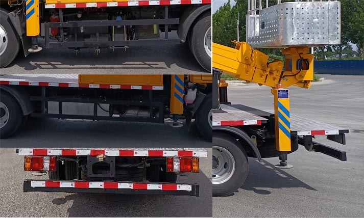 專用功能說明 | ABS型號:APG3550500A;ABS生產(chǎn)企業(yè):浙江亞太機(jī)電股份有限公司;選裝描述:隨底盤選裝駕駛室;選裝車輛后部樣式,上裝樣式。選裝側(cè)防護(hù)裙邊及橫桿結(jié)構(gòu);所用材料材質(zhì)、連接方式以及后部防護(hù)裝置的主要尺寸參數(shù)(斷面尺寸和離地高度):側(cè)、后防護(hù)材質(zhì)均為Q235,焊接連接,后防護(hù)截面尺寸100×50mm,下邊緣離地高度400mm;專用功能及裝置:該車由液壓機(jī)構(gòu),懸臂,轉(zhuǎn)臺,工作平臺,支腿等構(gòu)成,通過懸架伸縮,轉(zhuǎn)臺回轉(zhuǎn),將工作平臺舉升**作業(yè)位置; |