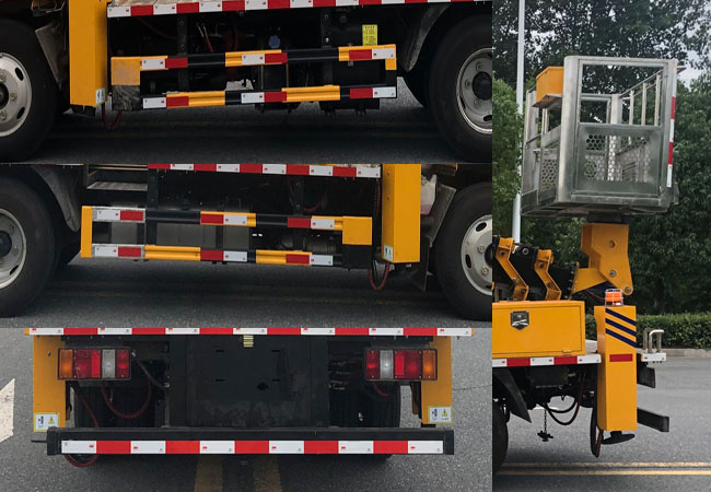 專用功能說明 | ABS型號:APG3550500A;ABS生產(chǎn)企業(yè):浙江亞太機電股份有限公司;選裝描述:隨底盤選裝駕駛室,選裝外觀樣式;所用材料材質(zhì)、連接方式以及后部防護裝置的主要尺寸參數(shù)(斷面尺寸和離地高度):側(cè)、后防護材質(zhì)均為Q235,焊接連接,后防護截面尺寸100×50mm,下邊緣離地高度410mm;專用功能及裝置:該車由液壓機構(gòu),懸臂,轉(zhuǎn)臺,工作平臺,支腿等構(gòu)成,通過懸架伸縮,轉(zhuǎn)臺回轉(zhuǎn),將工作平臺舉升**作業(yè)位置; |