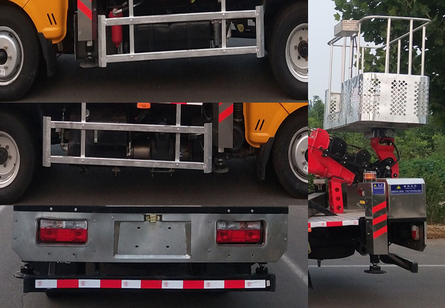 專用功能說明 | ABS型號:APG3550500A,ABS/ASR-12V-4S/4M;ABS生產(chǎn)企業(yè):浙江亞太機電股份有限公司,襄陽東風隆誠機械有限責任公司;選裝描述:僅選用3000mm軸距底盤,隨底盤選裝駕駛室;所用材料材質(zhì)、連接方式以及后部防護裝置的主要尺寸參數(shù)(斷面尺寸和離地高度):側(cè)、后防護裝置材料: Q235,側(cè)、后防護連接方式:焊接連接,后防護斷面尺寸(寬×高):50×100(mm),下邊緣離地高度:370mm;發(fā)動機/油耗值(L/100km)對應關(guān)系為:Q23-95E60/11.2;專用功能及裝置:該車由液壓機構(gòu),懸臂,轉(zhuǎn)臺,工作平臺,支腿等構(gòu)成,通過懸架伸縮,轉(zhuǎn)臺回轉(zhuǎn),將工作平臺舉升**作業(yè)位置; |