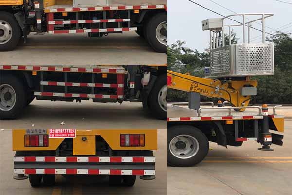 專用功能說明 | 該車由液壓機(jī)構(gòu),懸臂,轉(zhuǎn)臺,工作平臺,支腿等構(gòu)成,通過懸架伸縮,轉(zhuǎn)臺回轉(zhuǎn),將工作平臺舉升**作業(yè)位置;側(cè)、后防護(hù)材質(zhì)均為Q235,焊接連接,后防護(hù)截面尺寸100×50mm,下邊緣離地高度400mm,ABS系統(tǒng)型號APG3550500A,ABS系統(tǒng)生產(chǎn)廠家:浙江亞太機(jī)電股份有限公司,隨底盤選裝駕駛室,選裝不同外觀樣式。 |